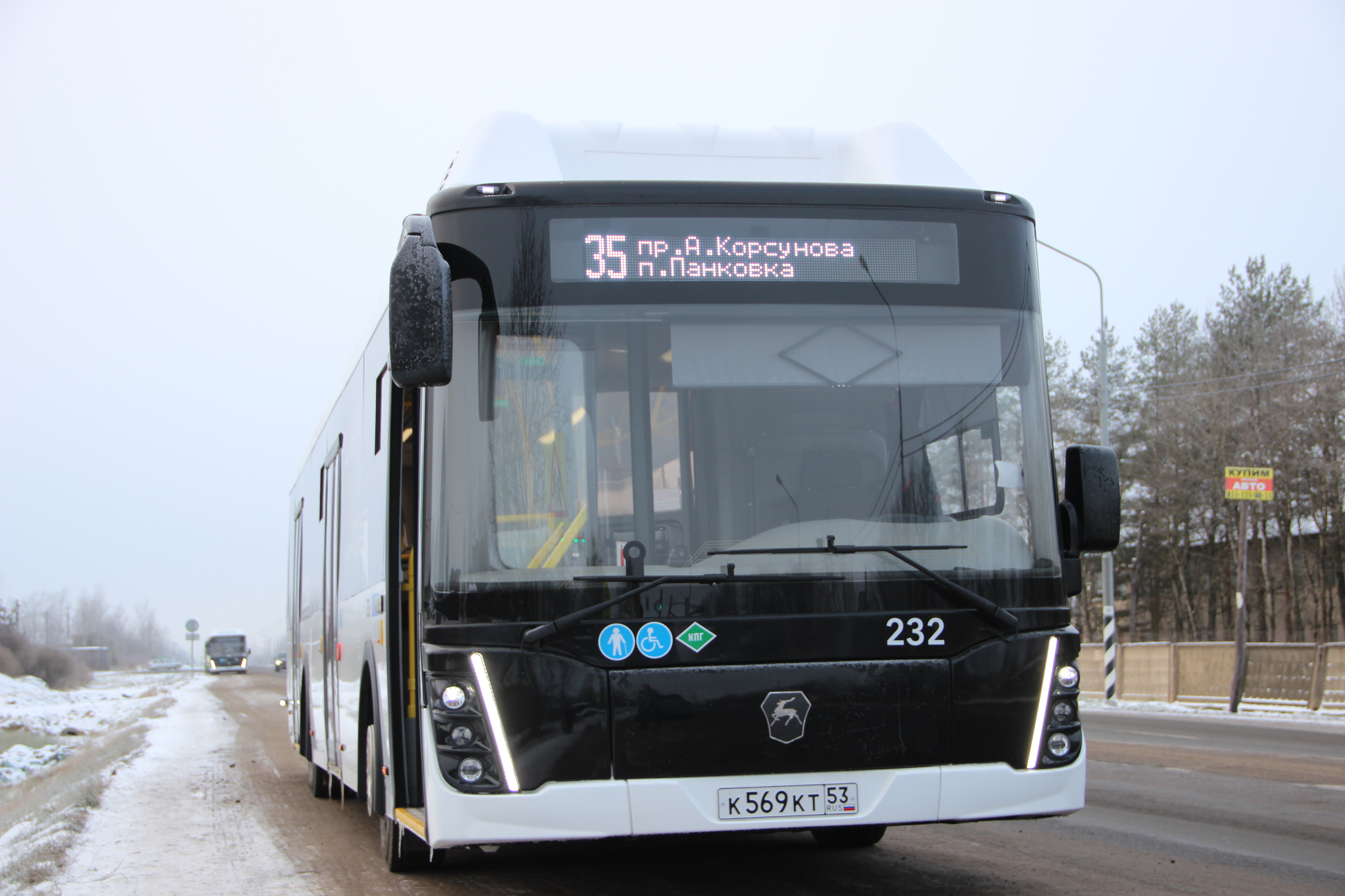 Автобусы курсируют по основным городским маршрутам, связывающим отдаленные части города. Среди них ― № 35, который соединяет густонаселенный поселок Панковку и центр Великого Новгорода. Ежедневно тысячи жителей добираются до мест учебы и работы именно на этом маршруте.
