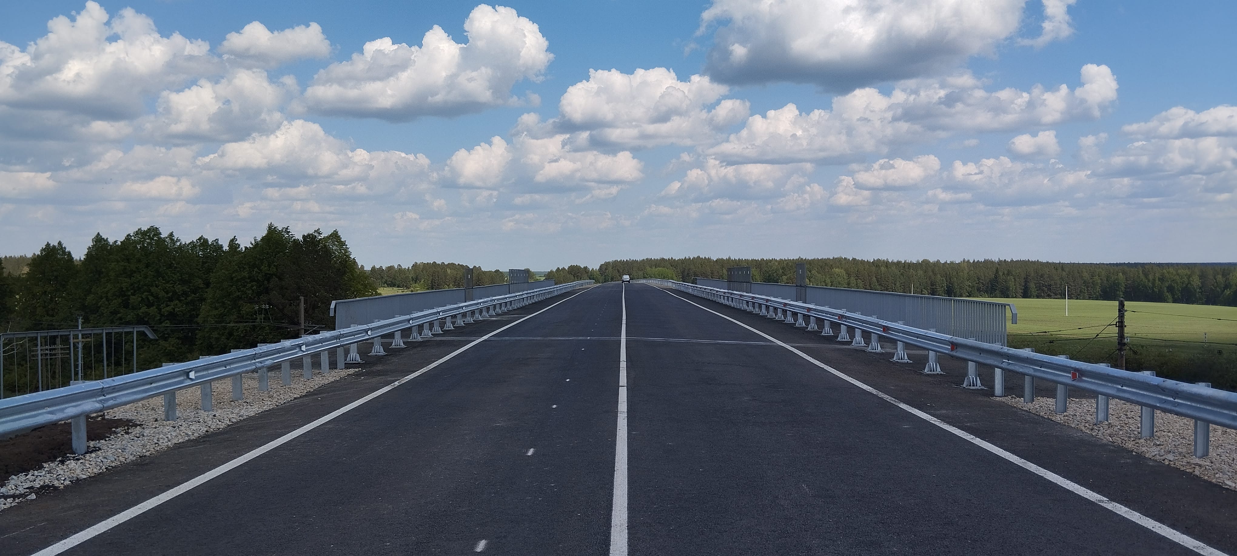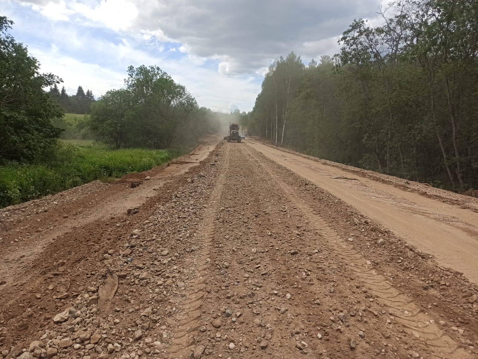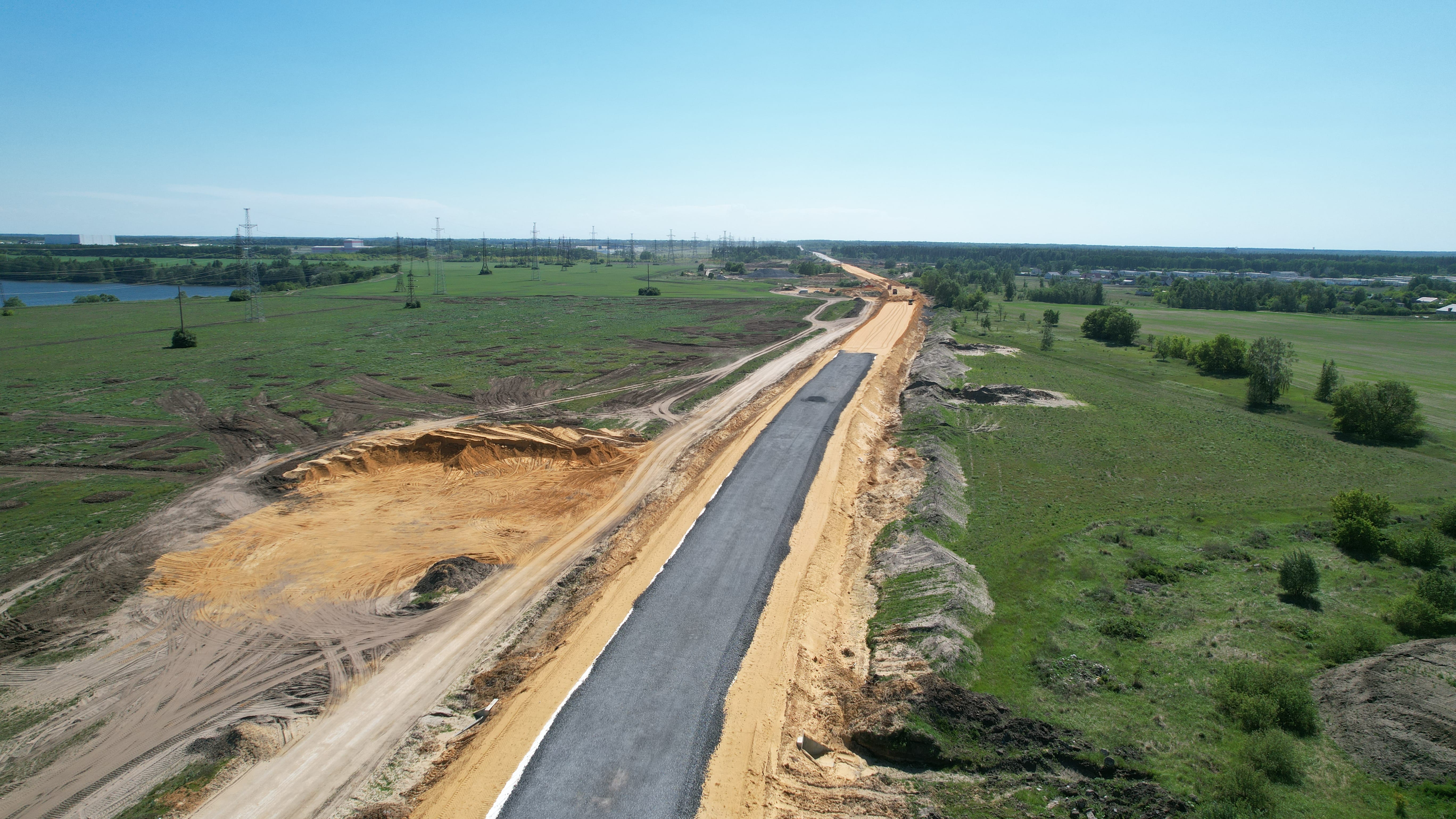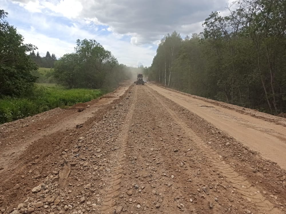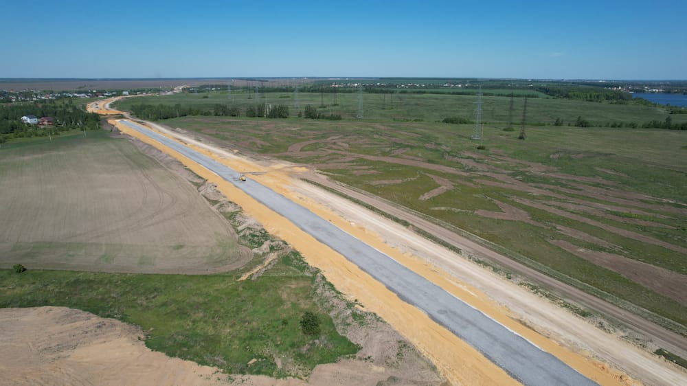 Работы на объекте начались в 2023 году и выполняются поэтапно. Сейчас строительные бригады устраивают основание из щебеночно-песчано-гравийной смеси. Кроме того, ведется монтаж наружного освещения на участках, проходящих через населенные пункты, а также укладка асфальтобетонного покрытия.