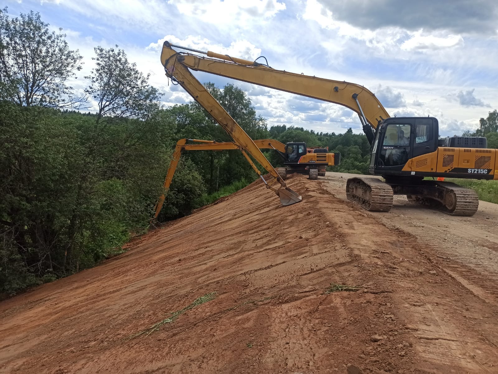На половине участка строительства дороги от моста до развязки с трассой Липецк – Грязи уже уложен первый слой асфальтобетона. Еще на протяжении почти 1,5 км устроены песчаный и щебеночный слои основания.